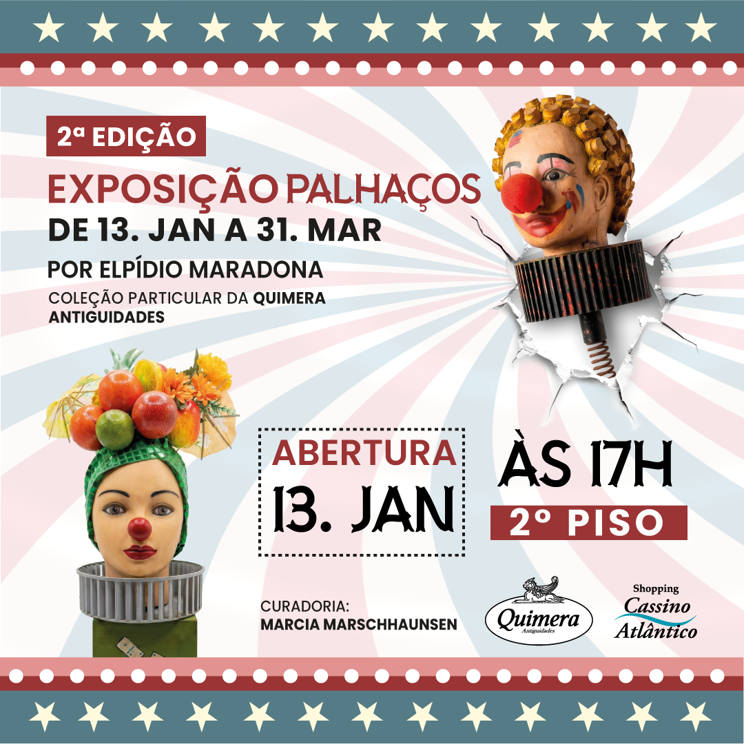 🎪✨ Exposição Palhaços – 2ª edição O Shopping Cassino Atlântico apresenta a Exposição Palhaços 2ª edição, com obras de @elpidiomaradona que exploram o universo do palhaço como expressão artística, sensível e profundamente humana. Uma experiência visual envolvente, que transita entre o lúdico, a memória e a emoção. ✨ Você não pode perder. 🗓 Inauguração da exposição: 13 de janeiro, às 17h 📍 2º andar – Shopping Cassino Atlântico 📆 Visitação: de 13/01 a 31/03 🎨 [...]